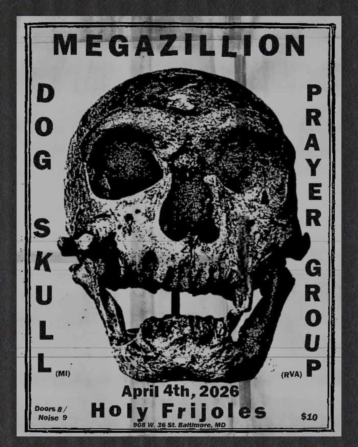 Prayer Group (VA noise Rock), Dog Skull (MI Hardcore), Megazillion (Baltimore Rock)